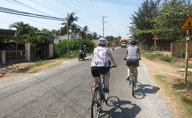 Day 2: Can Tho loop – 20km After breakfast we’ll take a 30-minute van drive to My Khanh garden for the ride looping the countryside of Can Tho. We’ll cycle along the riverbanks and shady paved roads surrounded by untouched farming and fishing communes. Our ride continues through the Khmer ethnic peaceful village where we’ll see many beautiful Buddhist temples and smiling kids. The Can Tho loop ride ends at the t with busy road and we take the van transfer to the central city for lunch. Followed by a walking tour of the central area with visit to the Theravada Buddhism Monastery. Balance of the day is at the pool or a massage. Dinner is at a riverside restaurant